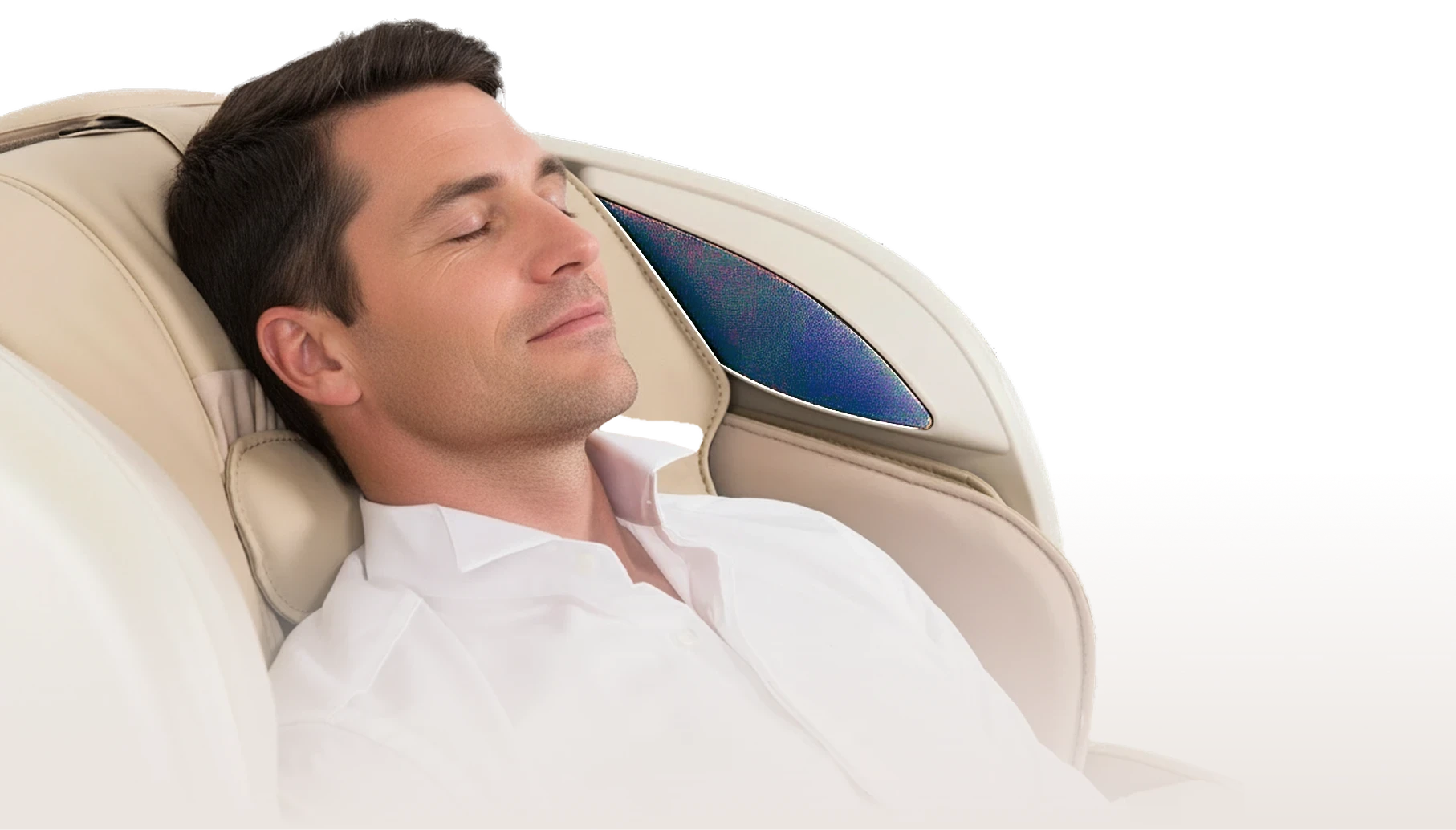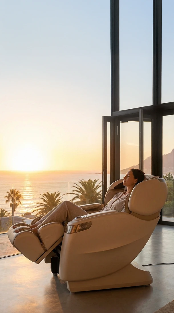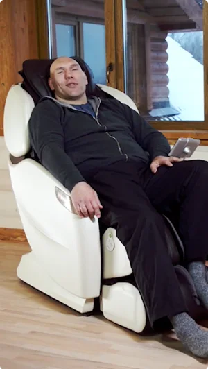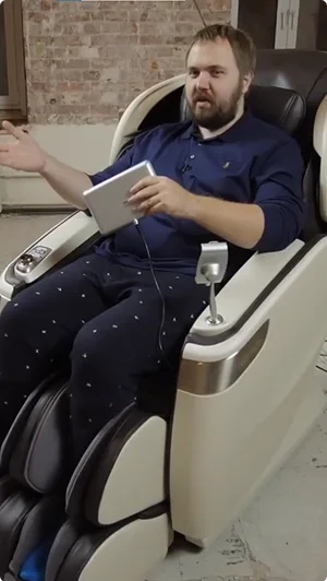Массажное кресло воссоздает атмосферу путешествия в автомобиле класса люкс: широкое кресло, эргономичный джойстик, музыка — трудно найти более идеальное пространство для расслабления.